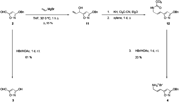 3-hydroxyisoxazole-5-carbaldehyde 3 and vinylene muscimol 4