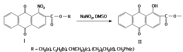 For instance, the esters (II) are obtained by the reaction of esters of 1-nitro-2-anthraquinonecarboxylic acid with NaNO2.