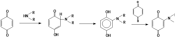 Apparently, the reaction III ® IV-V may be interpreted by analogy with nucleophilic addition of amines to quinones:
