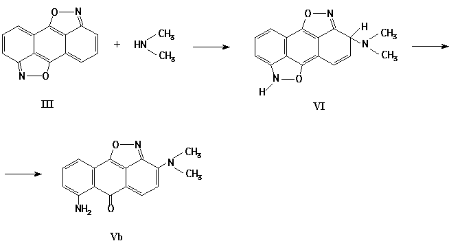 3-Dimethylamino-7-amino-6H-6-oxoanthra[1,9-cd]isoxazole (Vb): Yield 70%, mp > 300°C