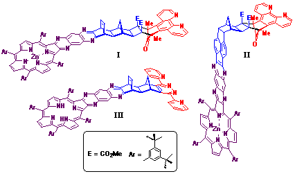 structurally organised porphyrin-ligand couples I-III.