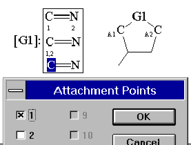 | The pre-defined generic groups except G and G* can only have one bond to the parent structure whereas user-defined generic groups and atom lists can have more than one bond |