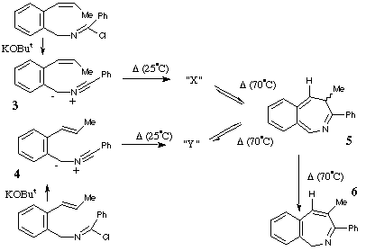 On refluxing in benzene, either "X" or "Y" interconvert via the presumed