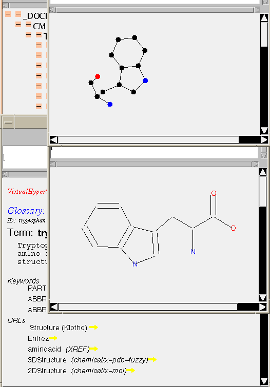 <XVAR TYPE="URL" MIME="chemical/x-cml" TITLE="someTitle">someFilename</XVAR>In CML TYPE="URL" implies that the XVAR contains pointer information as its content, and that the TYPE of the information is given by the MIME attribute (i.e. the target is a CML file). (The target can be any file type, but the application program may not always be able to process it! This is a much safer method than relying on suffixes).