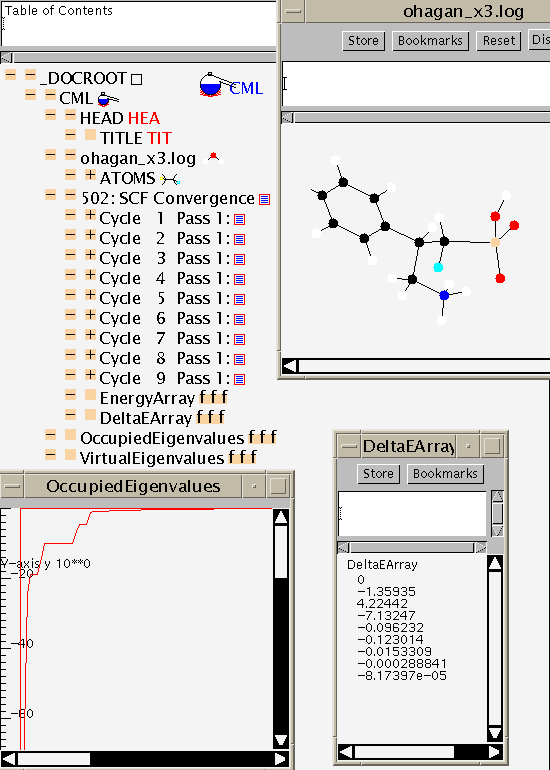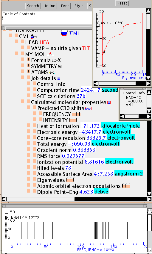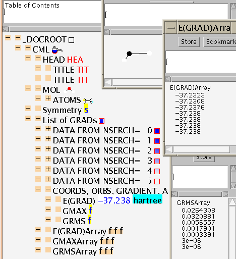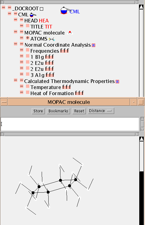 (The CML files output for these examples are NOT complete - this is because chunks of information have been omitted by the postprocessor. Some of the real numbers have also lost precision - this is simply due to the limitations of JDK1.0 in dealing with formats and not a problem with CML. These problems will disappear.)