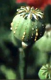 | The opium poppy, papaver somniferum | The seed pod, showing the exudate |