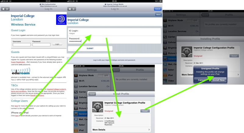 Web page/Safari + configured WiFi router