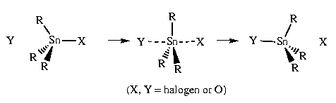 Britton and Dunitz applied the technique to numerous 'reactions' including modelling SN2 substitution with inversion at SnVI. The study was based on a series of [R3SnX2] complex crystal structures.
