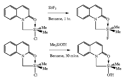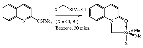 Silyl chloride and bromide complexes are prepared quantitatively from the reaction of 2-trimethylsiloxyquinoline with the appropriate (halomethyl)dimethylchlorosilane in dry benzene.