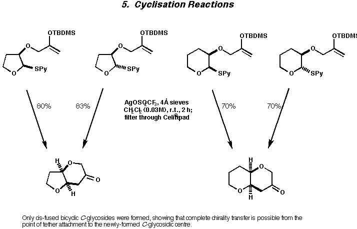 bicyclic and monocyclic C-glycosides by cationic cyclisation reactions.