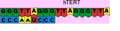 After the initial recognition of the telomere end, the binding site of hTR interacts with the telomere end in such a way that it can be used as a template. It guides the addition of the six-base telomeric repeat unit, GGATTG, to its telomere end. This is called elongation.