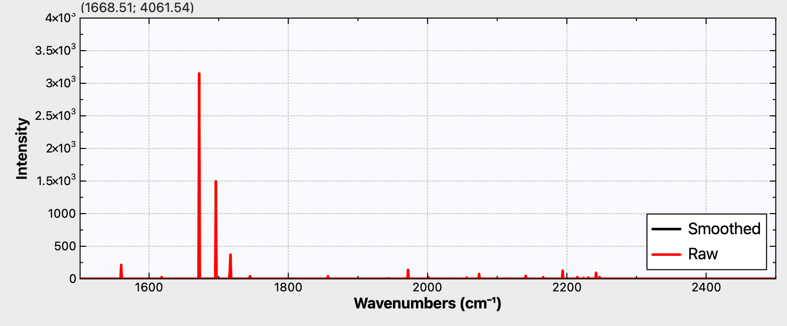 Calculating the quantum mechanical geometry of both [n]-annulenes and by association [n]-cyclocarbons is non trivial.[7],[8] Many DFT functionals for example tend to over-estimate the degree of C-C bond length alternation around the ring.[9] Recognising this, the authors of this article[1] calibrated their own adjustment to the veritable CAM-B3LYP functional against a redetermined crystal structure of [18]-annulene[10],[11],[8] calling the resulting functional OX B3LYP30[12] It was specifically optimized for extended conjugated systems by including 30% short-range exact HF exchange.[8] Significantly, [18]-annulene is an example of a 4n+2 (n = 4) cyclo-aromatic molecule for which significantly less bond alternation (if any) is expected, compared to so-called 4n-class antiaromatic molecules (e.g. cyclobutadiene (n=1)[13]). The focus of this blog – C48 – is doubly anti-aromatic (n=12), once in the σ- and then the π-frameworks and so its bonds would certainly be expected to alternate in length. This alternation directly results in the Raman activity observed in the C-C stretching regions (see Figure 4c in the article[1] and reproduced in Figure 1a below).