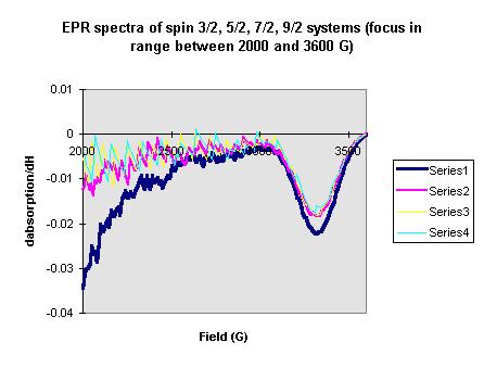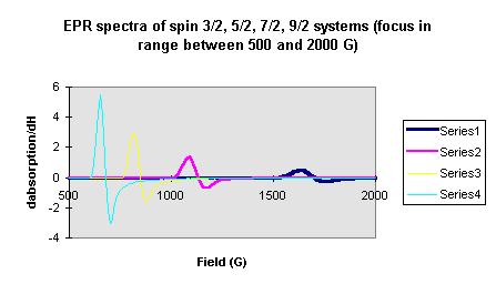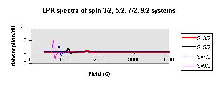 Figure 1. EPR spectra of Spin 3/2, 5/2, 7/2, 9/2 system when
