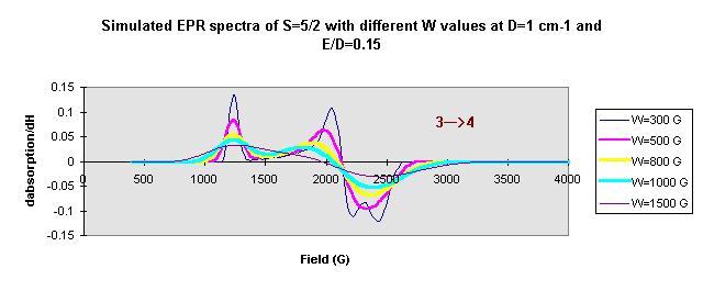 Figure 6. Simulated EPR spectra of S=5/2 within narrow