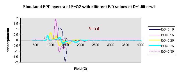 Figure 11. Simulated EPR spectra of S=9/2 with different E/D values