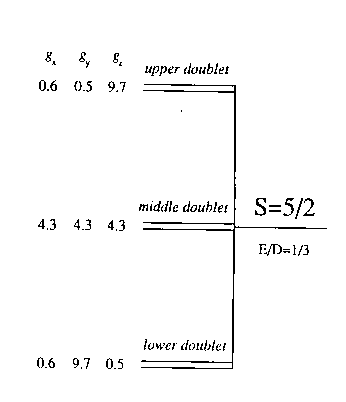 at 2S+1 (for instance S=5/2, the g value is 6). When E/D=1/3, g=4.3 signal